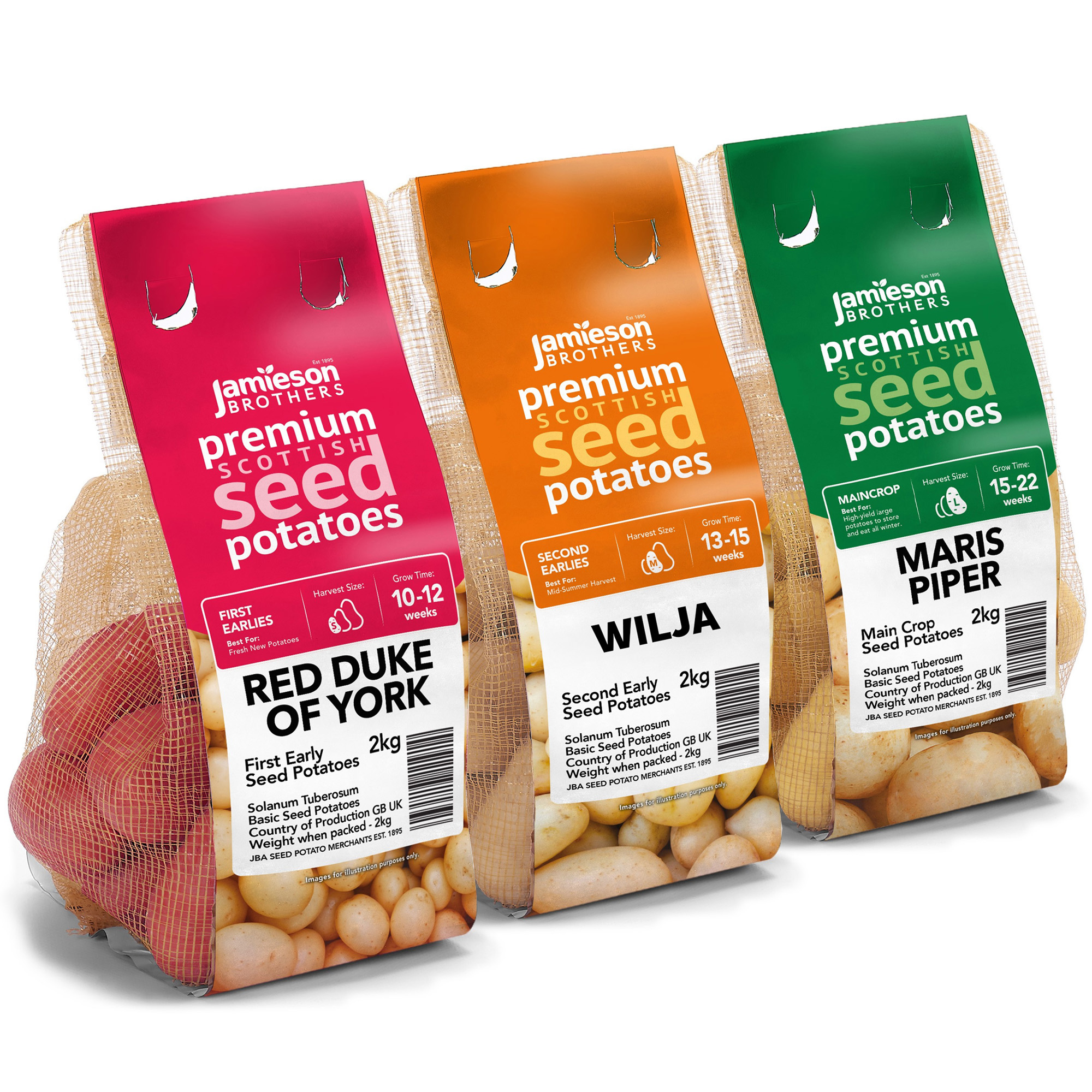 Jamieson Brothers 6kg Seed Potato Bundle (Red Duke of York, Wilja & Maris Piper) Easy to Grow & High Yielding Varieties Perfect for All Uses