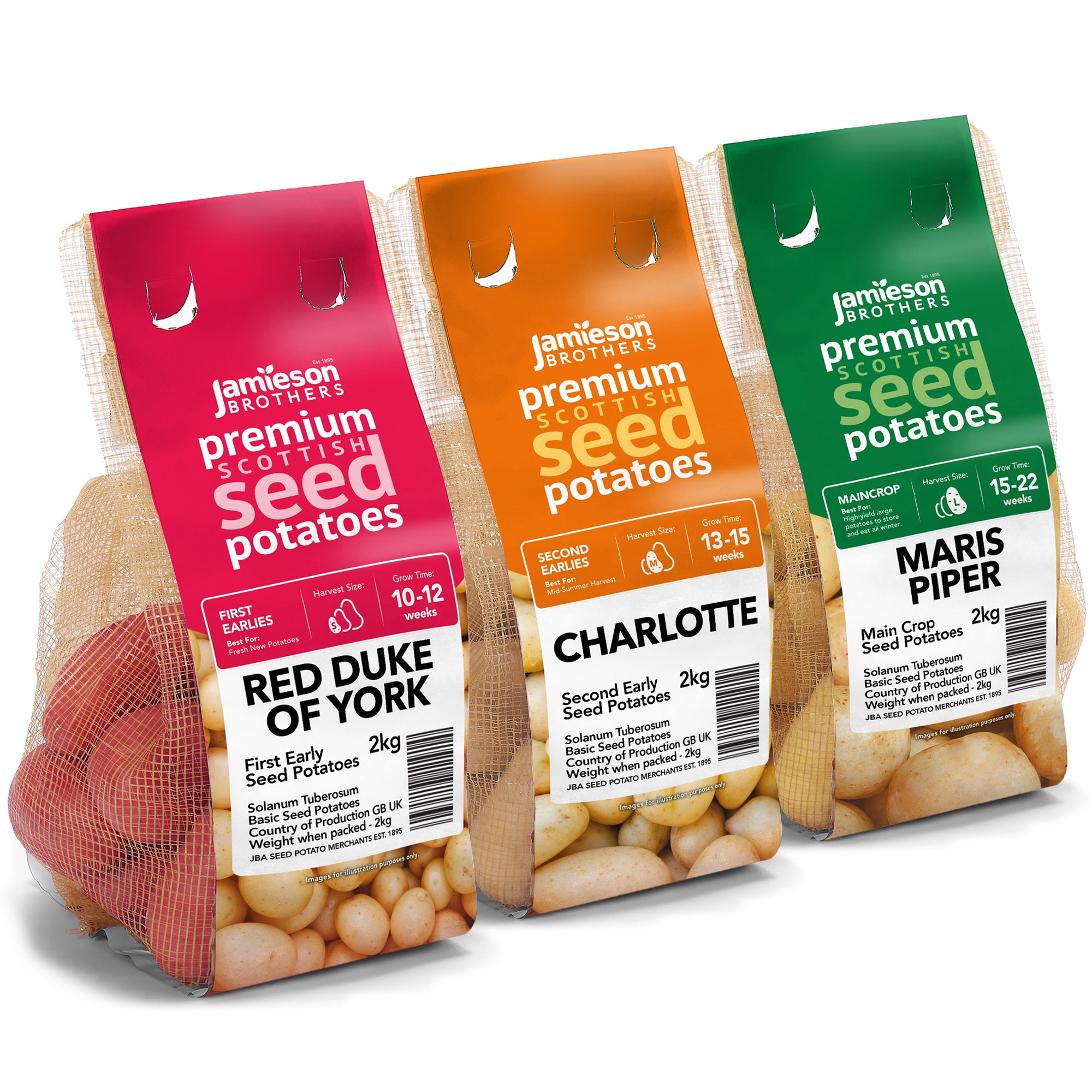 Jamieson Brothers 6kg Seed Potato Bundle (Charlotte, Maris Piper & Red Duke of York) Easy to Grow & High Yielding Varieties Perfect for All Uses