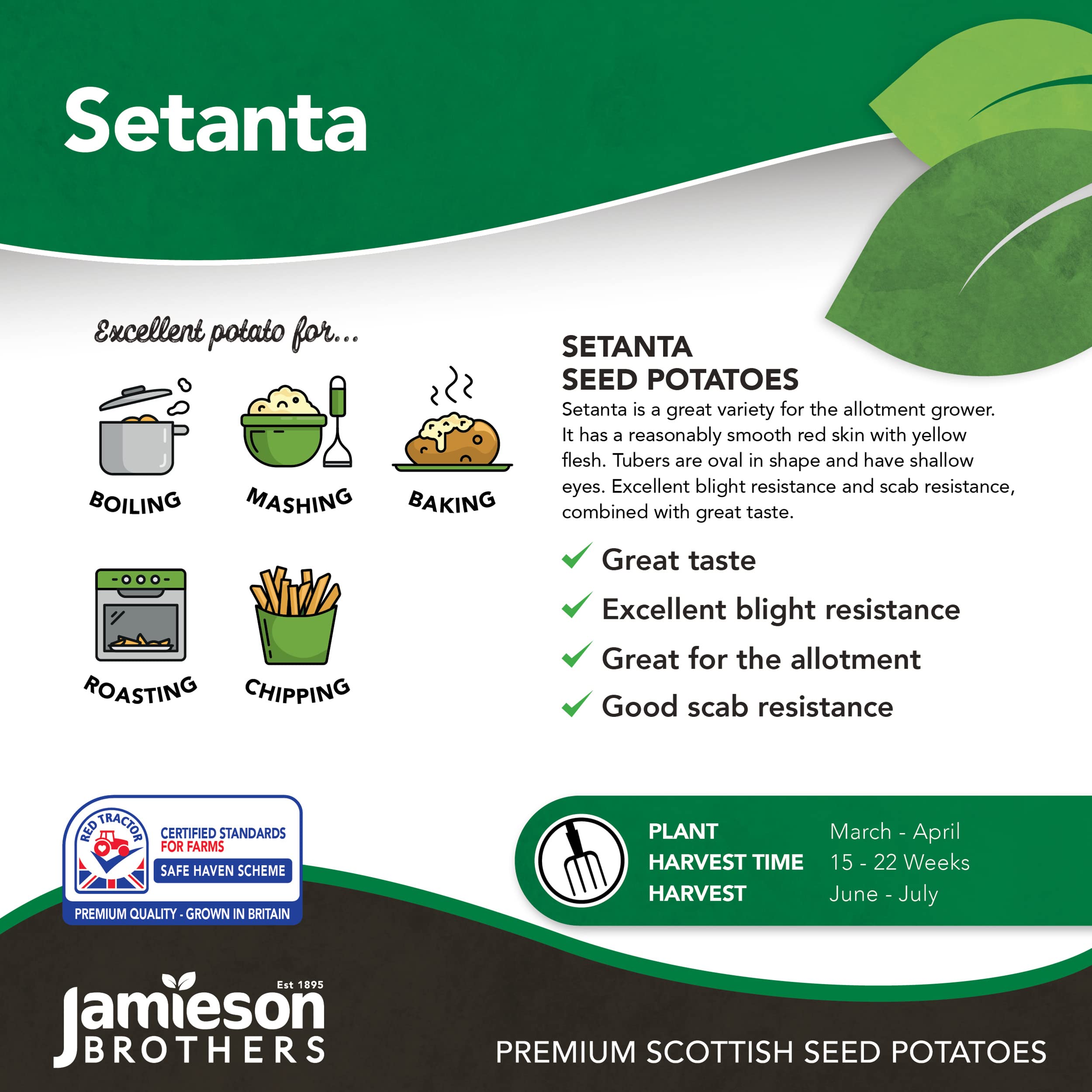 Setanta seed potatoes are one of the most blight resistant potato varieties available in the UK, making them a great variety for the allotment grower.