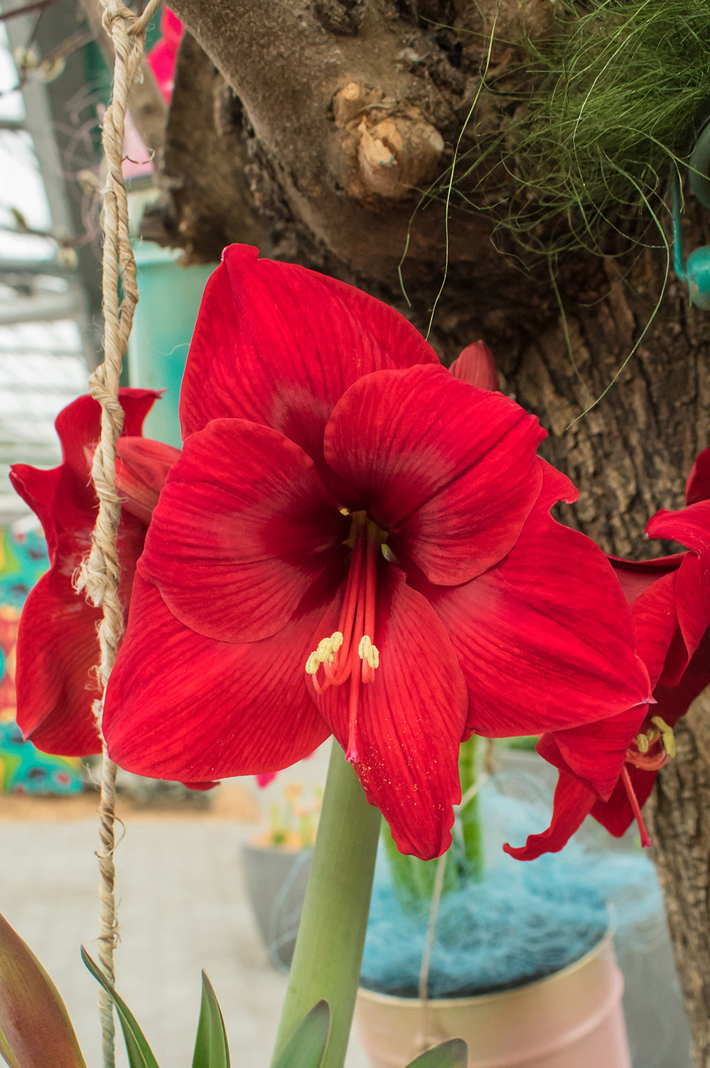 The Amaryllis Bulb with Plant Pin in striking red is a stunning variety of the Amaryllis flower. Its vibrant color and elegant petals make it a beautiful addition to any garden.