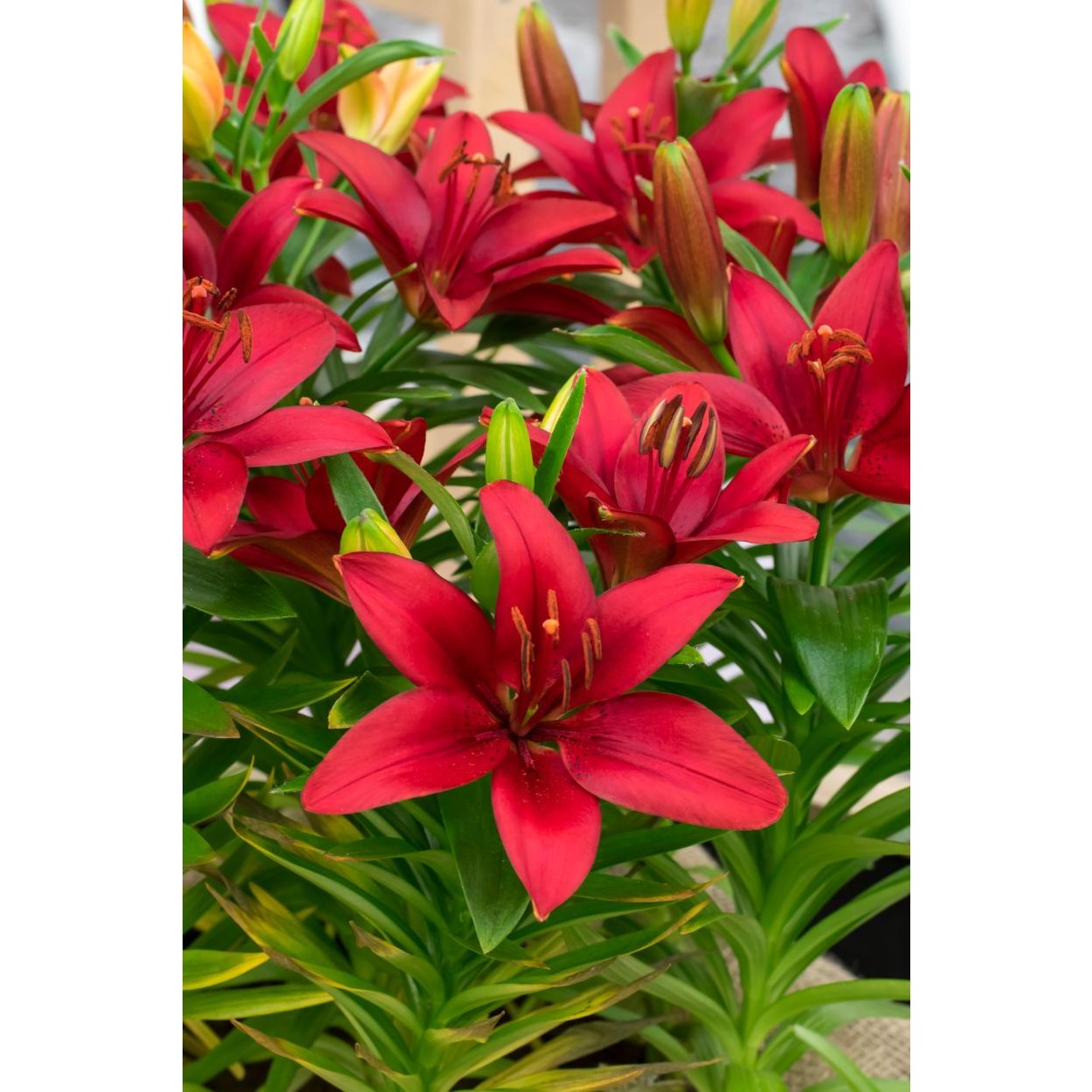 Lilium Asiatic Red delivers intense colour with rich, scarlet-red blooms that make an impact from the moment they open. These reliable lilies are easy to grow and flower early in the season, making them a brilliant choice for brightening up borders and patio pots. Their strong stems and upward-facing flowers also make them a favourite for cutting.