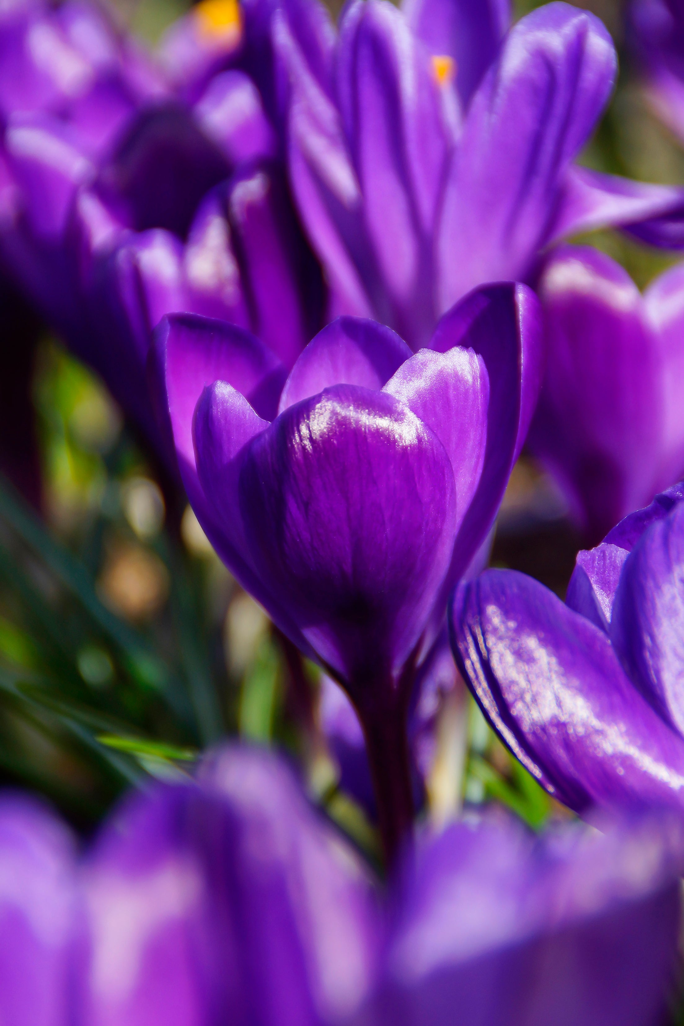 Crocus Large Flowering 'Flower Record' (Crocus vernus 'Flower Record') produces vibrant, cup-shaped purple blooms with bright orange stamens. These early-spring flowers are perfect for borders, lawns, containers, and naturalising, bringing a burst of colour after winter.