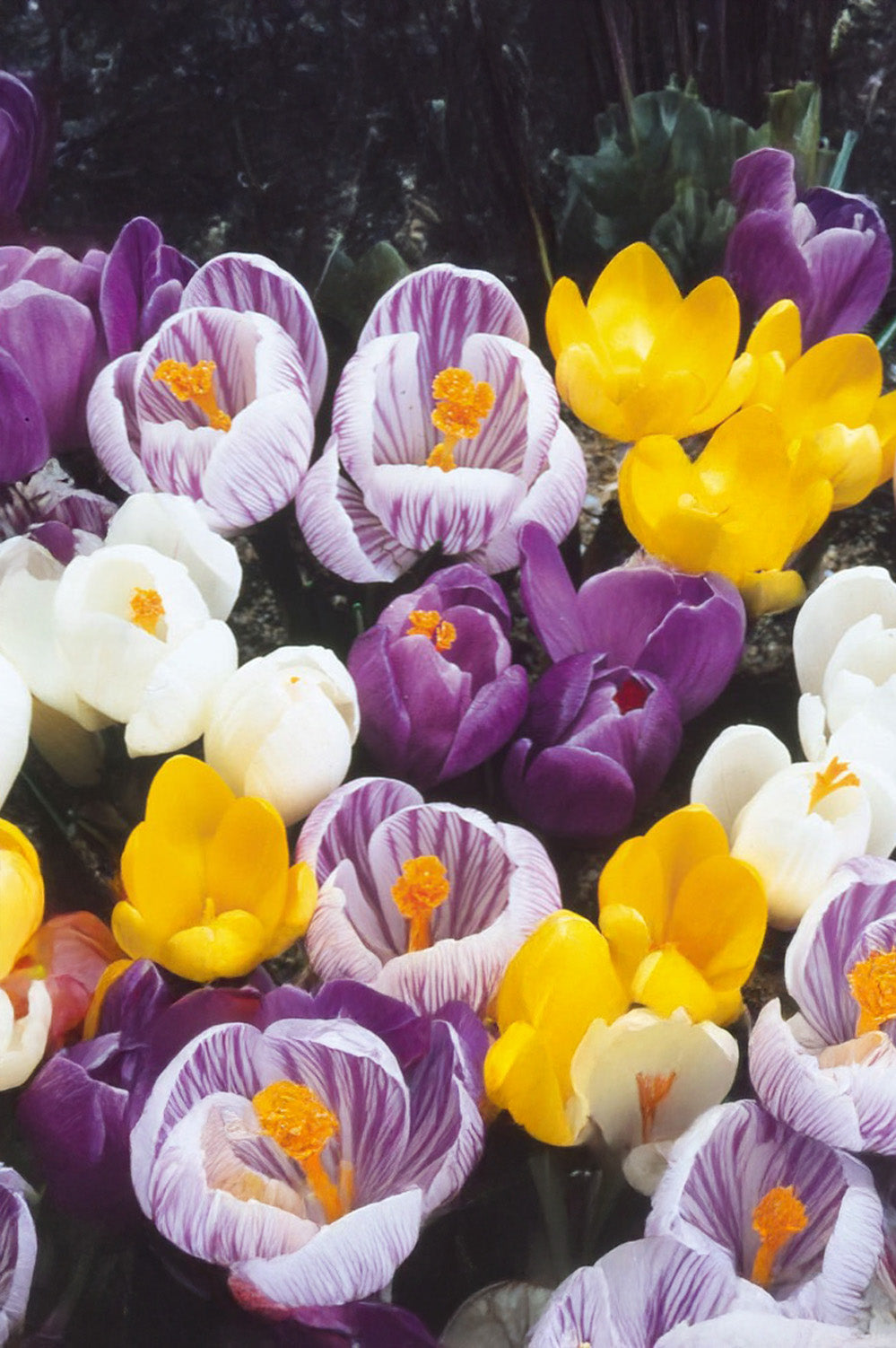 Crocus Large Flowering Mix (Crocus vernus) offers a cheerful blend of large, cup-shaped blooms in vibrant shades of purple, white, yellow, and striped varieties. Flowering early in spring, this mix brings a bright splash of colour to lawns, borders, and containers just as winter fades.