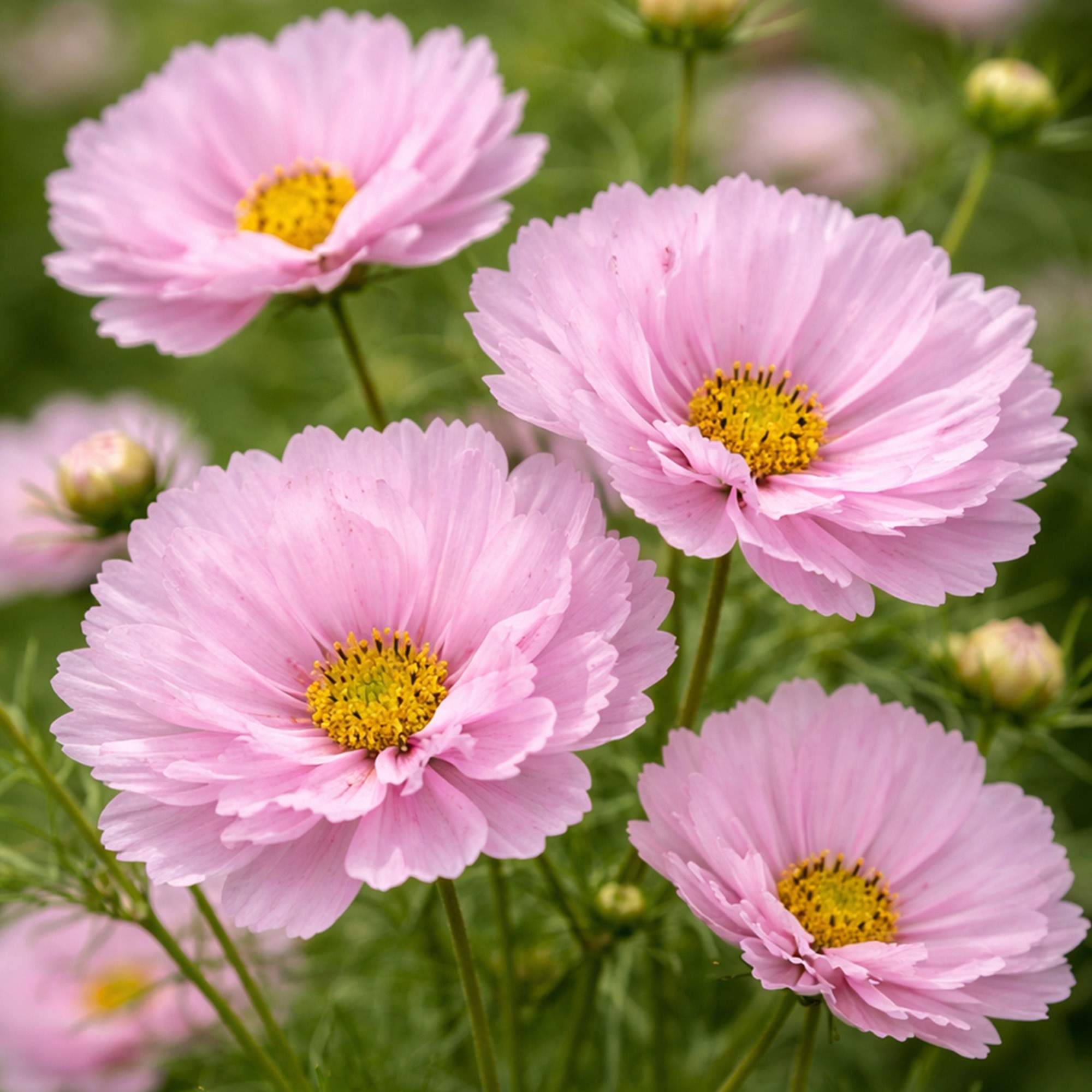 - Middle: Cosmos varieties, Nigella, Cornflower, and Zinnia for texture and movement.
