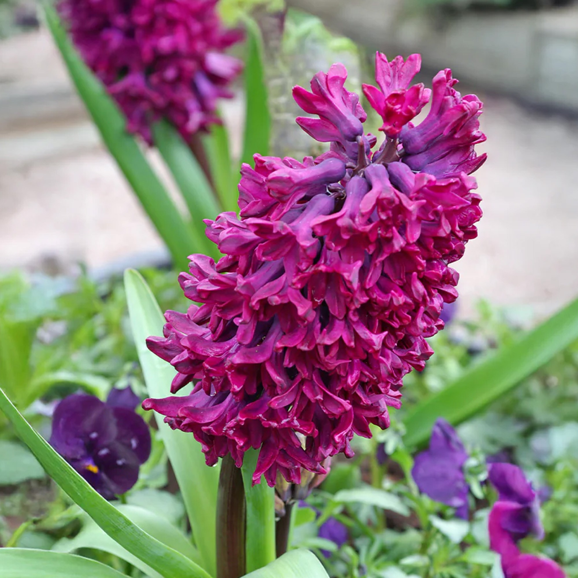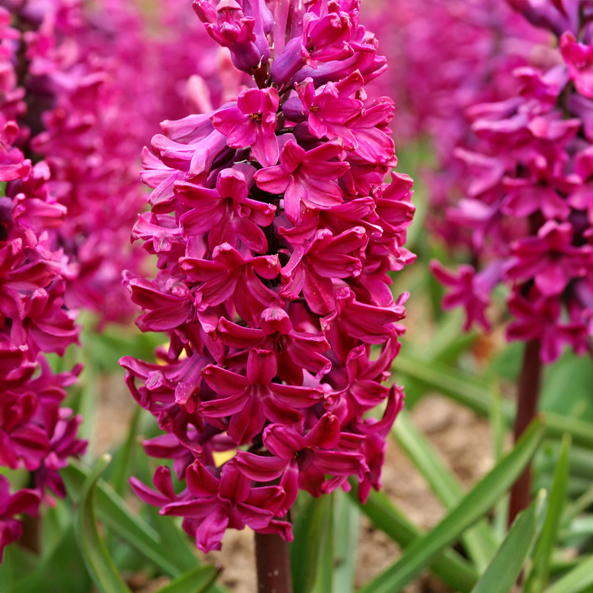 In mid-spring, expect compact spikes of dark purple blooms with a rich, sweet fragrance. These hyacinths are excellent for both outdoor garden displays and indoor arrangements, adding vibrant colour and strong scent to any setting.