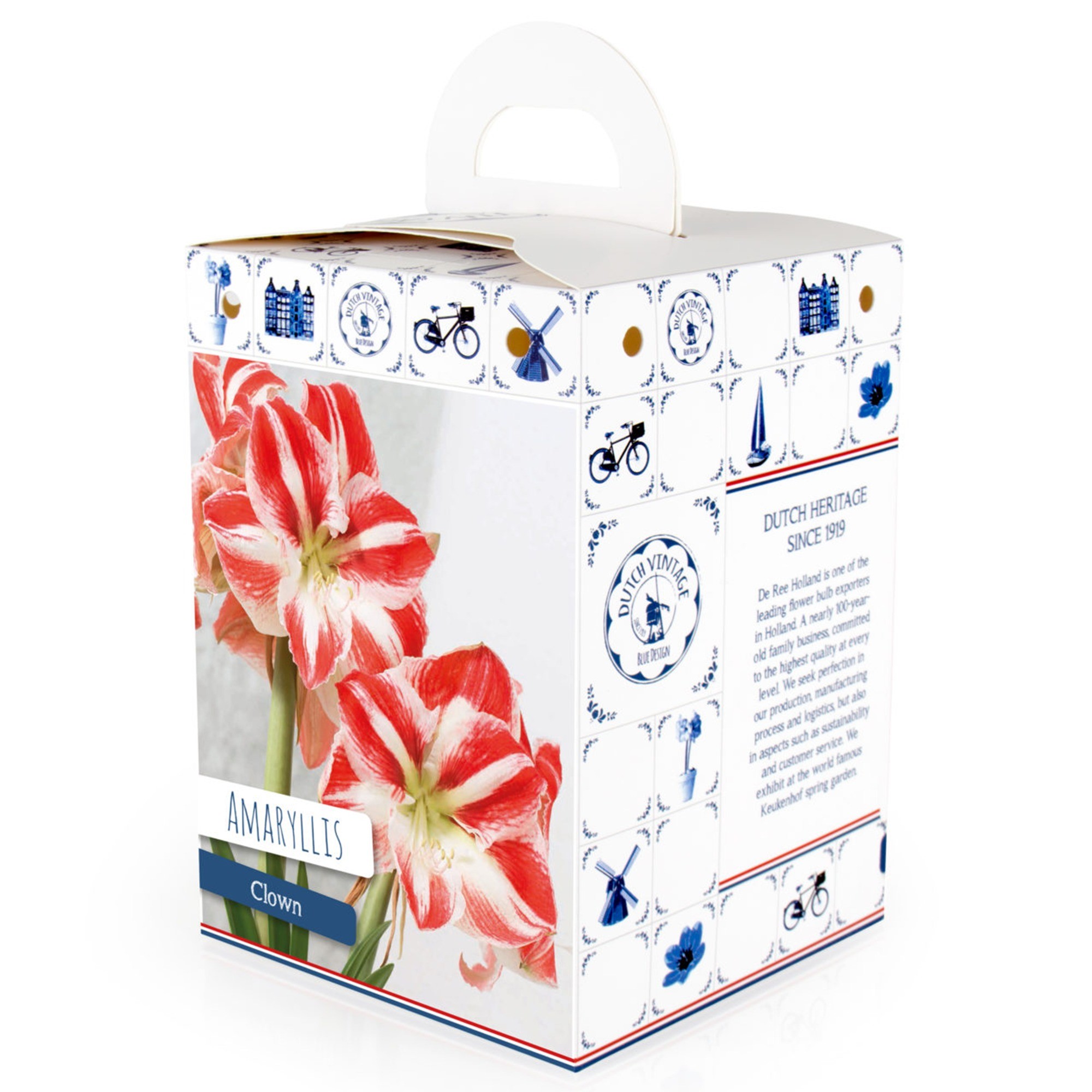 Royal De Ree Holland Amaryllis Clown Pre-Potted Bulb Gift Box – 1 Large 28/30cm Hippeastrum in Decorative Box | Indoor Flowering Christmas Gift