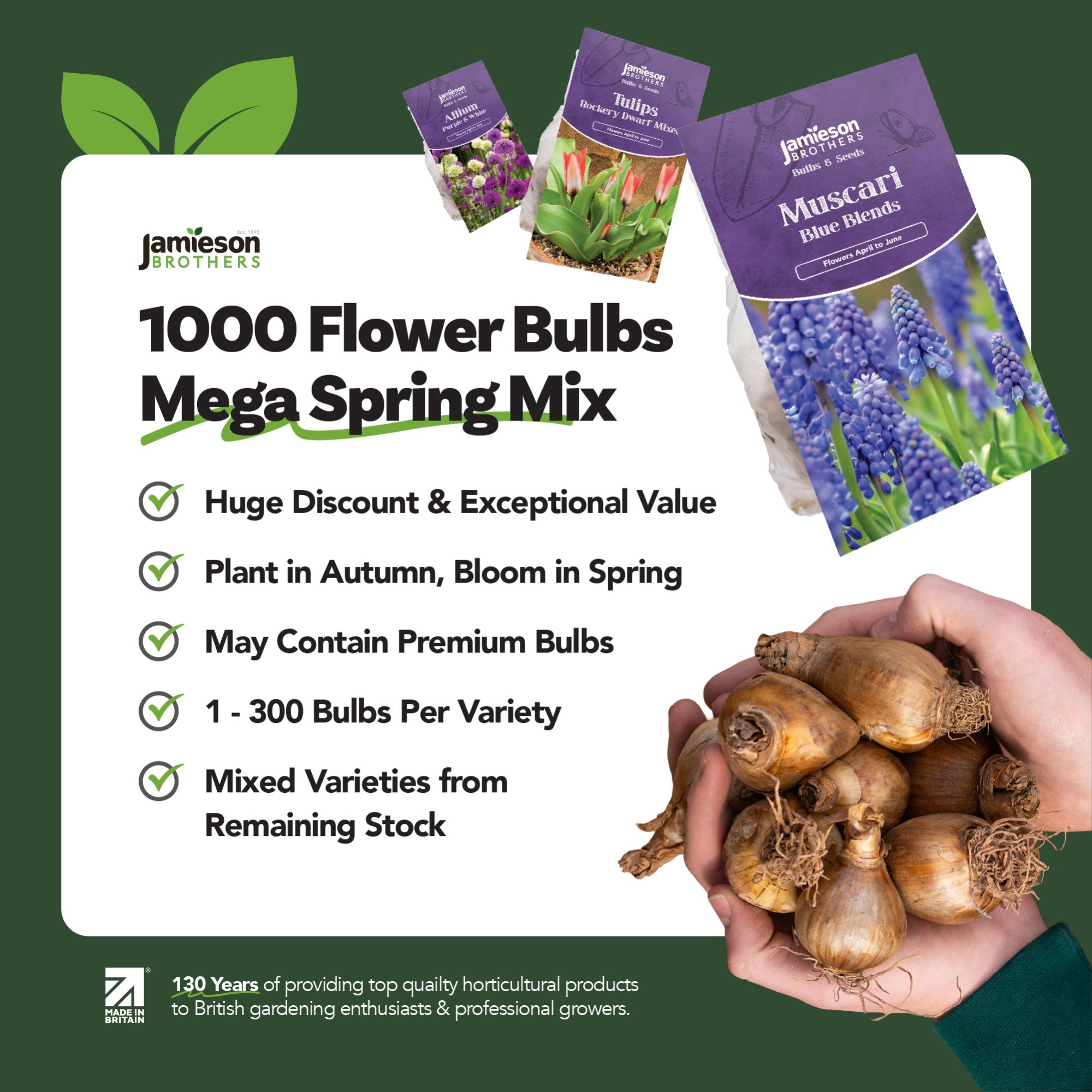 Jamieson Brothers Mega Spring Flowering Mix (Approx.1000 Bulbs )