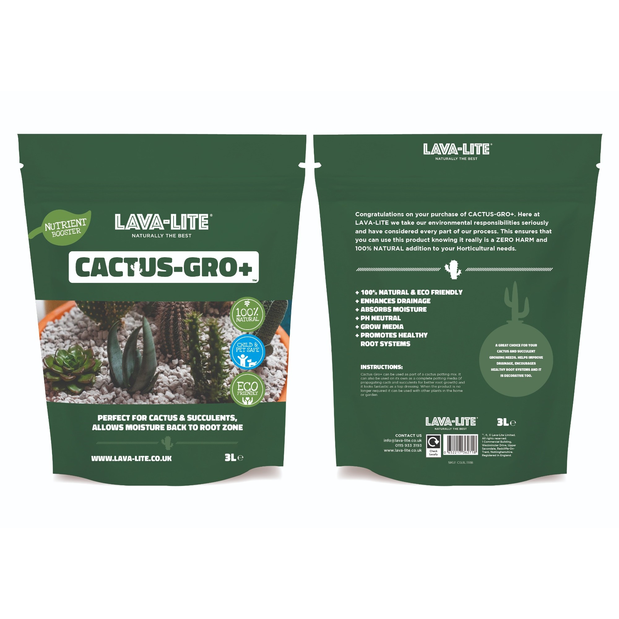 Introducing the Lava-lite Cactus-Gro+ 3Lt potting mix, perfect for enhancing the growth of your beloved cacti and succulents! Made in the United Kingdom by Lava-lite, this eco-friendly and natural potting mix is specially formulated to create the optimal environment for your plants to thrive.