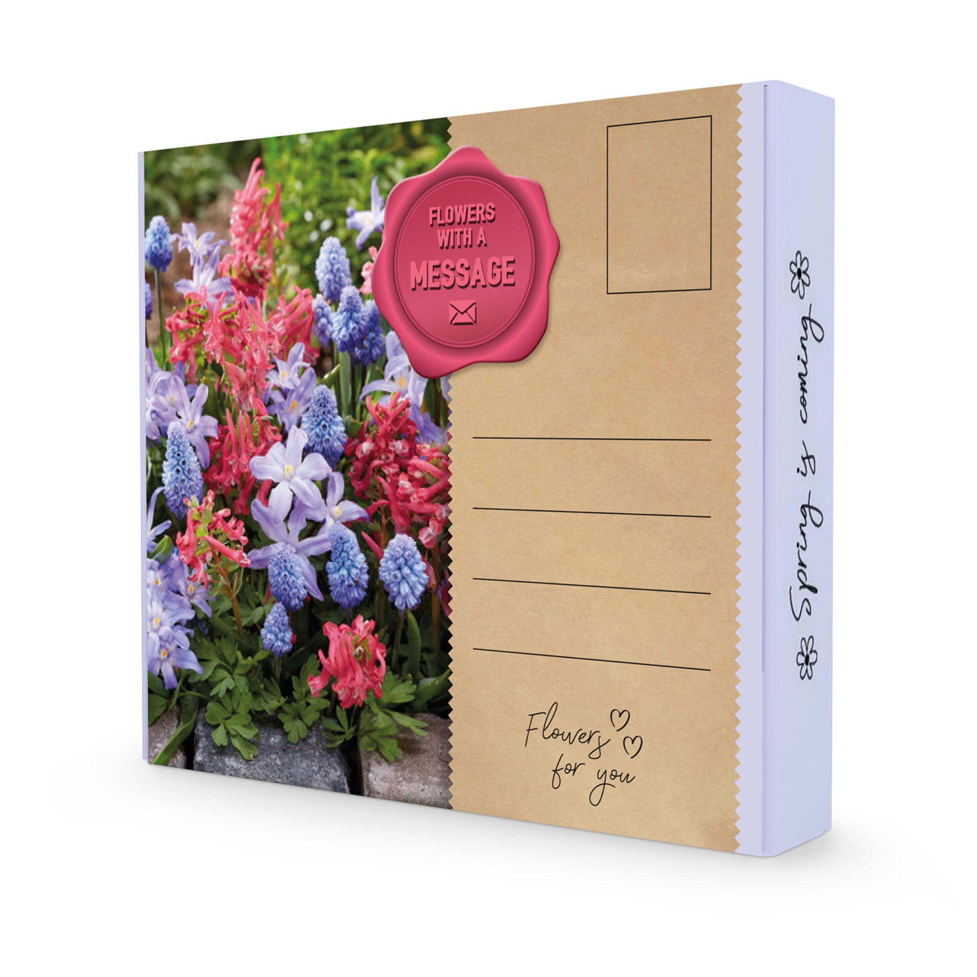 Royal De Ree Holland Postal Gift Box - Flowers with a Message!: Corydalis Beth Evans, Chionodoxa Blue & Muscari Azuream