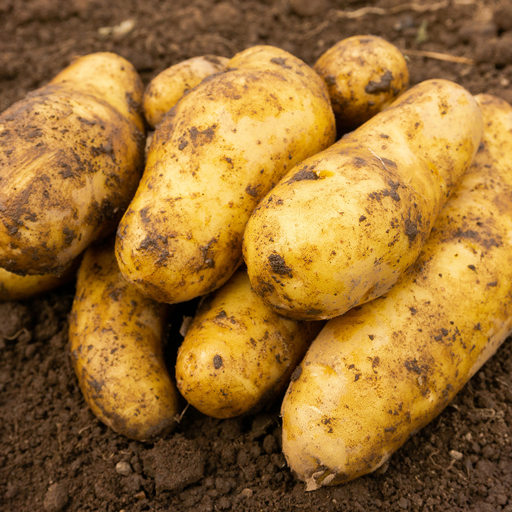 A French variety with quite a distinctive chestnut flavour. Produces long shaped tubers with white skin and yellow flesh. Excellent for boiling and steaming and can be enjoyed hot or cold.